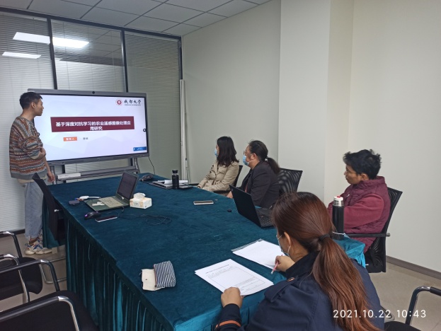 参加本次答辩会的研究生曹峡,从学位论文选题,研究目的、方法、创新性,研究价值及实用性结果等方面进行汇报并对评委提出的问题进行回答。
