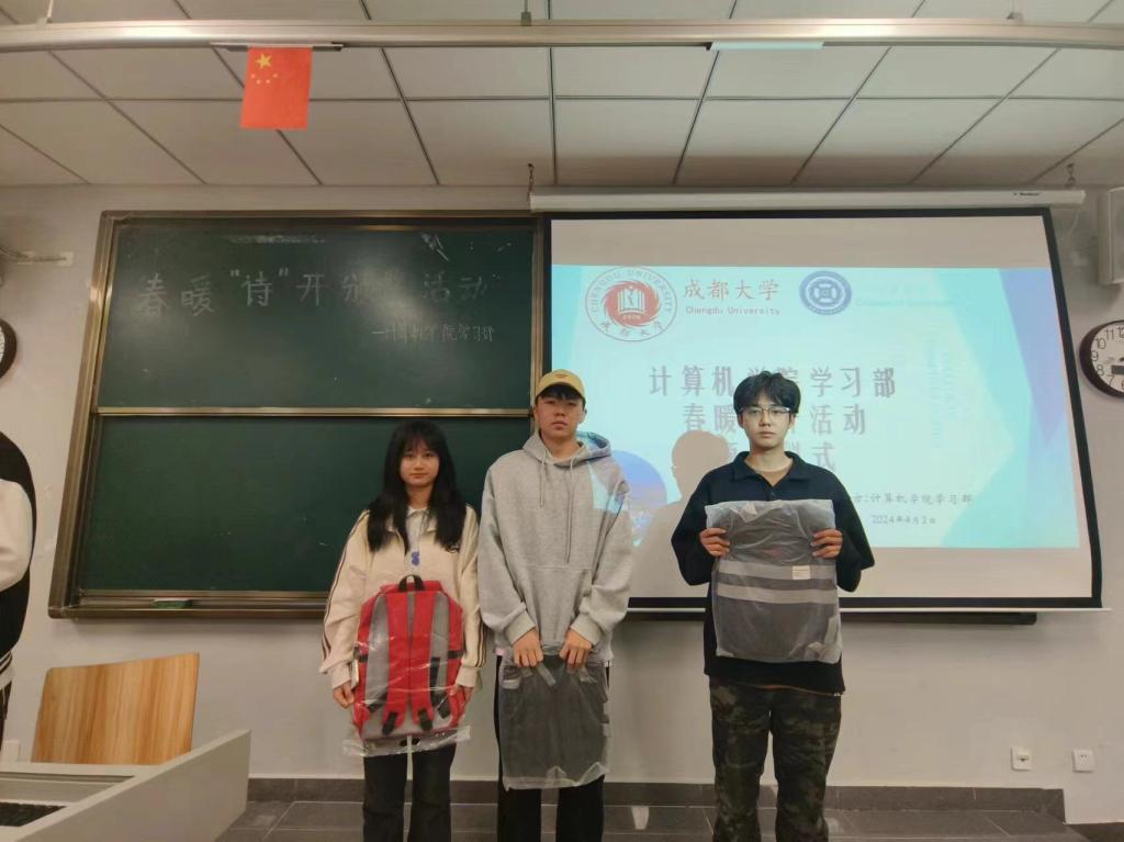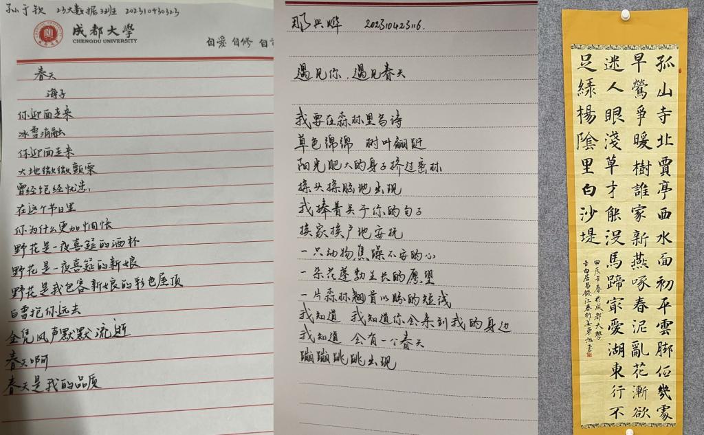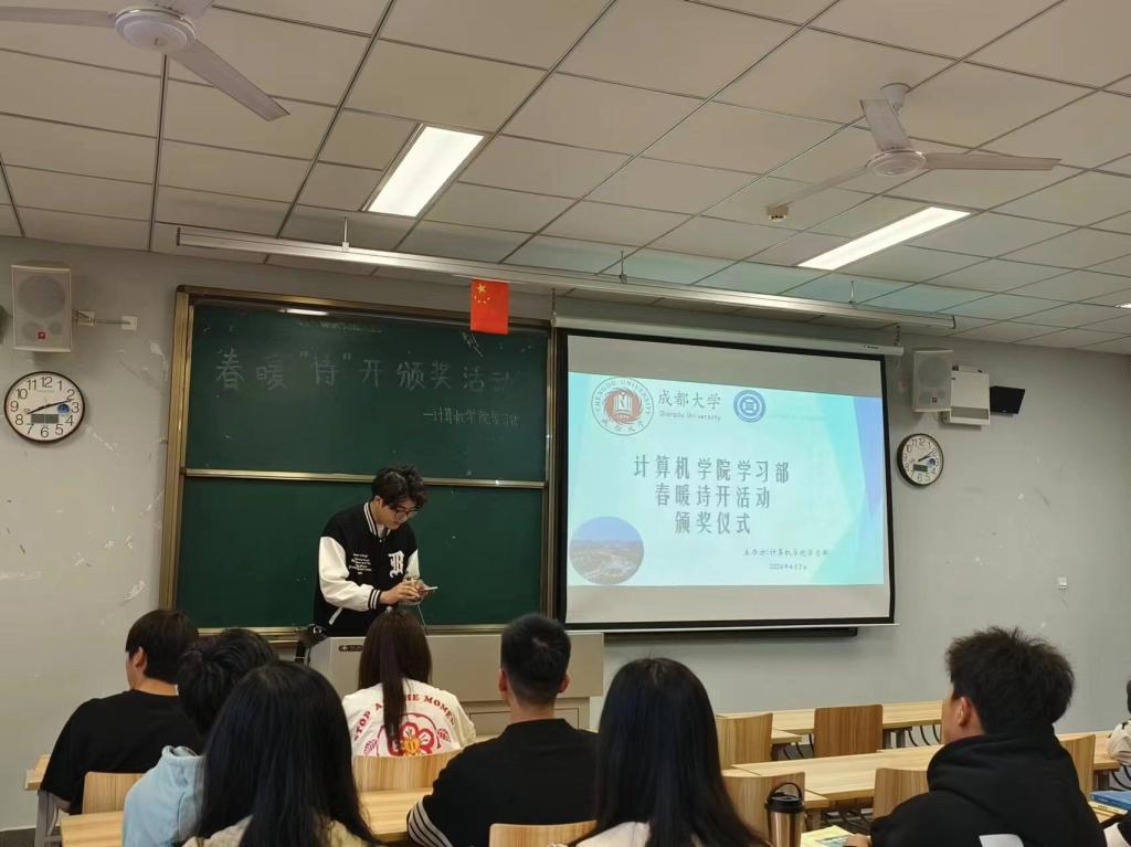 在本次活动中,同学们积极参加,参赛的作品数不胜数,颁奖典礼上展示的学生作品为大数据3班姜东旭同学的参赛作品,诗句中散发着成大学子蓬勃向上的朝气。在这百花齐放的比赛中,大数据三班姜东旭、人工一班那兴烨、23大数据3班孙于钦脱颖而出,荣获本次活动奖项。