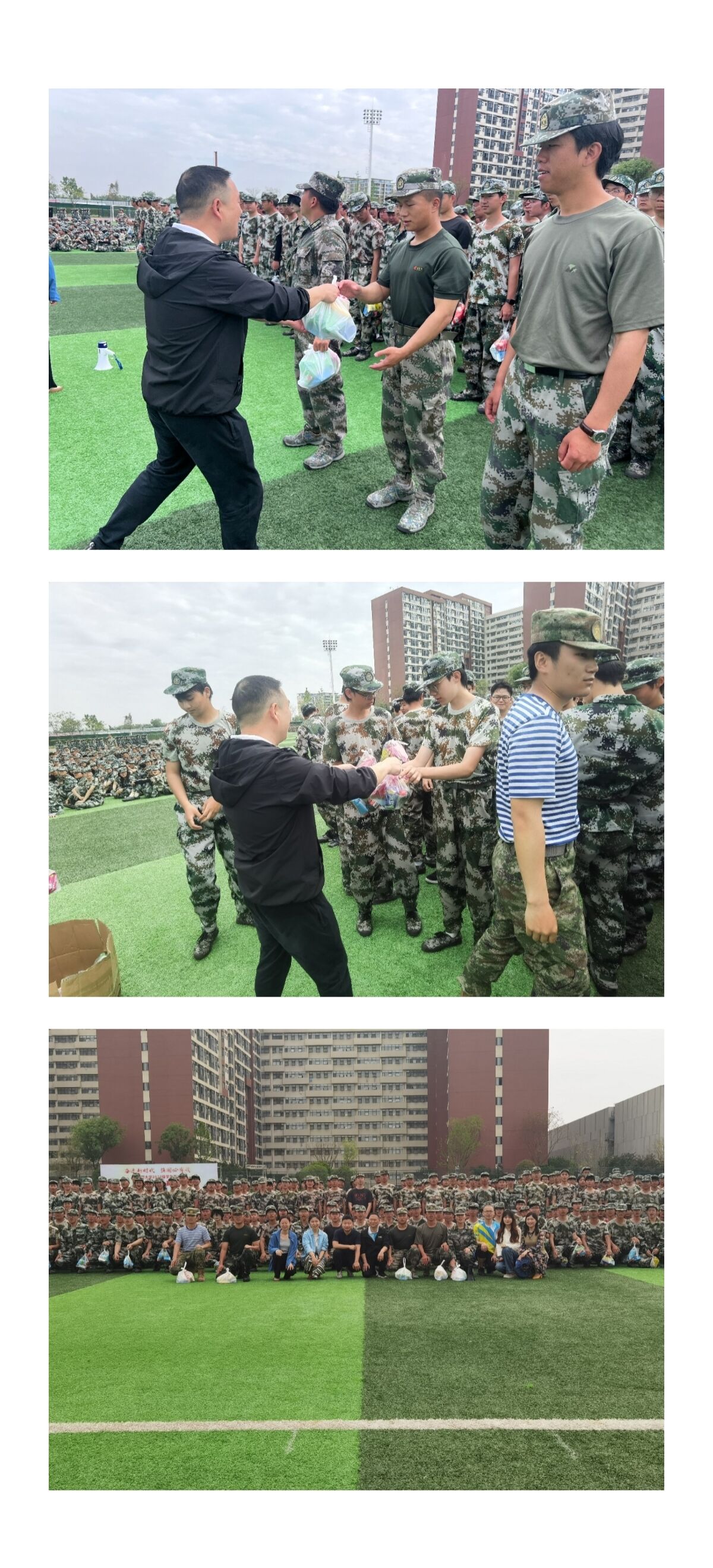 党委副书记孟源、学工办全体辅导员等来到军训场地,对军训教官和参训同学进行了亲切慰问。