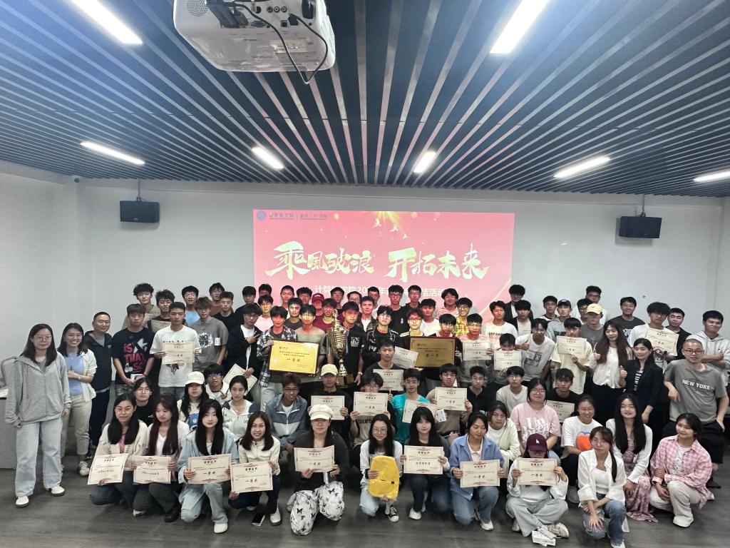 最后,所有获奖者、学院领导、学生代表在舞台前合影留念,记录这一荣耀时刻。希望同学们能够继续发扬团结拼搏、奋发向上的体育精神,在下一届的田径运动会中,能够继续守住这份荣誉!