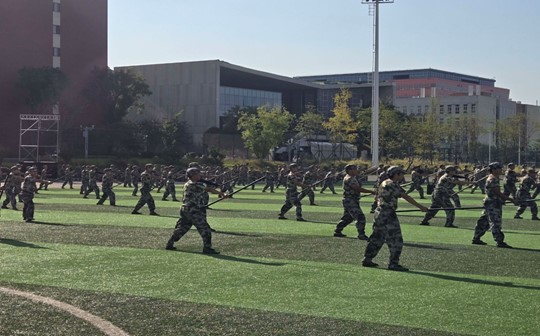 操场上,同学们身着整齐的迷彩服,手持应急棍,个个精神抖擞。教官们英姿飒爽,示范着标准的应急棍动作,一招一式刚劲有力,虎虎生风。同学们目不转睛地看着教官的示范,眼神中充满了敬佩和期待。训练开始,同学们迅速进入状态。“劈、盖、挑、砸”,每一个动作都伴随着响亮的口号声,气势恢宏。应急棍在他们手中仿佛有了生命,时而如蛟龙出海,威猛无比;时而如灵蛇舞动,灵动敏捷。尽管汗水湿透了衣衫,但同学们没有丝毫懈怠,他们全神贯注地投入到训练中,力求把每一个动作都做到极致。