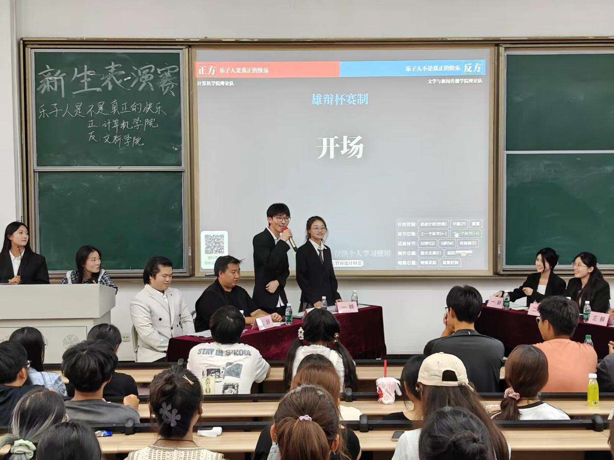 的辩论精英,还吸引了众多2024级新生的热情观赛。赛场上,双方辩手围绕辩题展开了激烈而富有深度的交锋,以各自独特的视角和精彩的论述,展现了思辨的魅力与青春的风采,为在场的每一位观众带来了一场智慧与激情的盛宴。