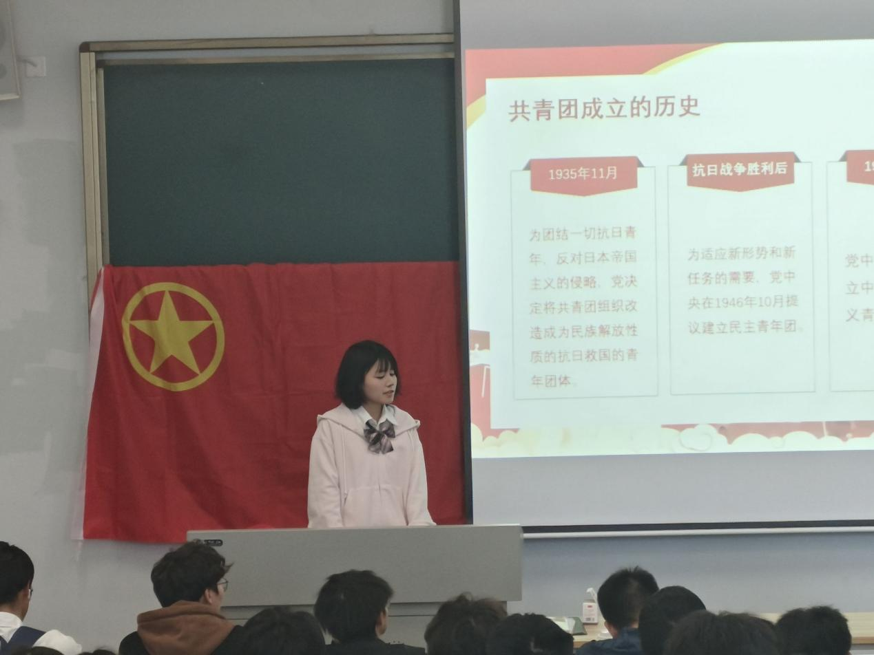 本次团课从中国共产主义青年团简介、中国共产主义青年团团徽、团旗及团歌、共青团成立的历史等方面开展,由两位主讲人分别为同学们讲解,并对规范使用团旗、团徽、团歌进行了强调,最后主讲人希望全体学员要深入理解共青团的性质、任务和职责,全面了解团员的权利和义务,明确自己的责任,树立正确的理想信念,增强组织观念和纪律意识,感受时代赋予的使命。此次团课培训加深了同学们对于共青团的了解,坚定同学们加入共青团的信念。