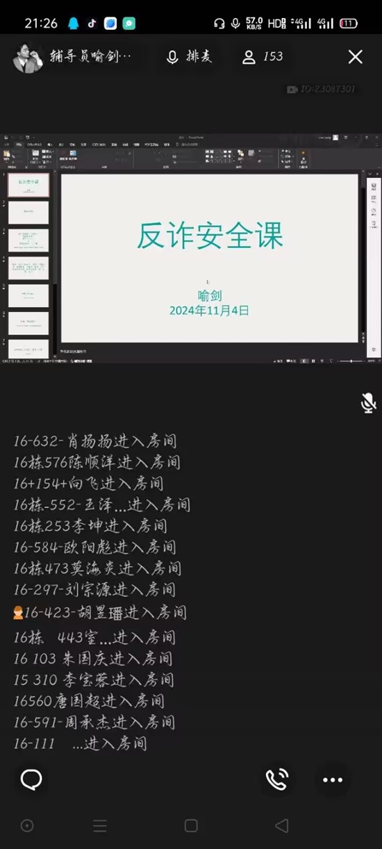 举办了一场反诈安全课,由负责安全板块的辅导员喻剑主讲,全院有 243 名室长参与聆听。此次课程旨在提高学生的反诈意识,增强自我保护能力,预防各类诈骗案件发生。