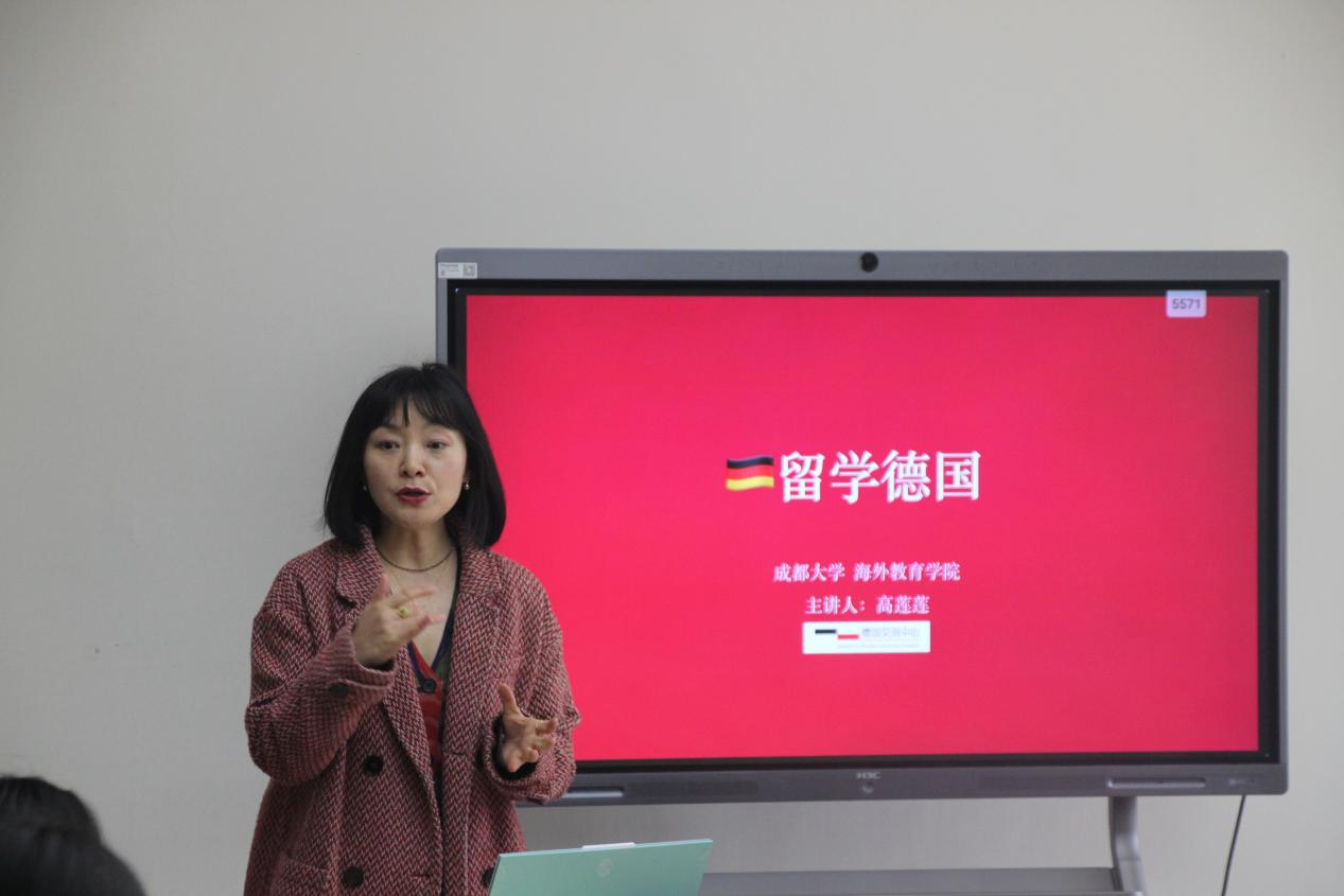 宣讲会上,高莲莲首先着重介绍了在德国留学的诸多优势。她指出,德国以其严谨的学术氛围、先进的科研设施以及高质量的教育体系,吸引着全球学子。在德国,留学生不仅能接触到前沿的学术知识,还能体验独特的欧洲文化,提升跨文化交流能力。此外,德国高校的许多专业在国际上享有盛誉,学位认可度极高,为学生未来的职业发展奠定坚实基础。