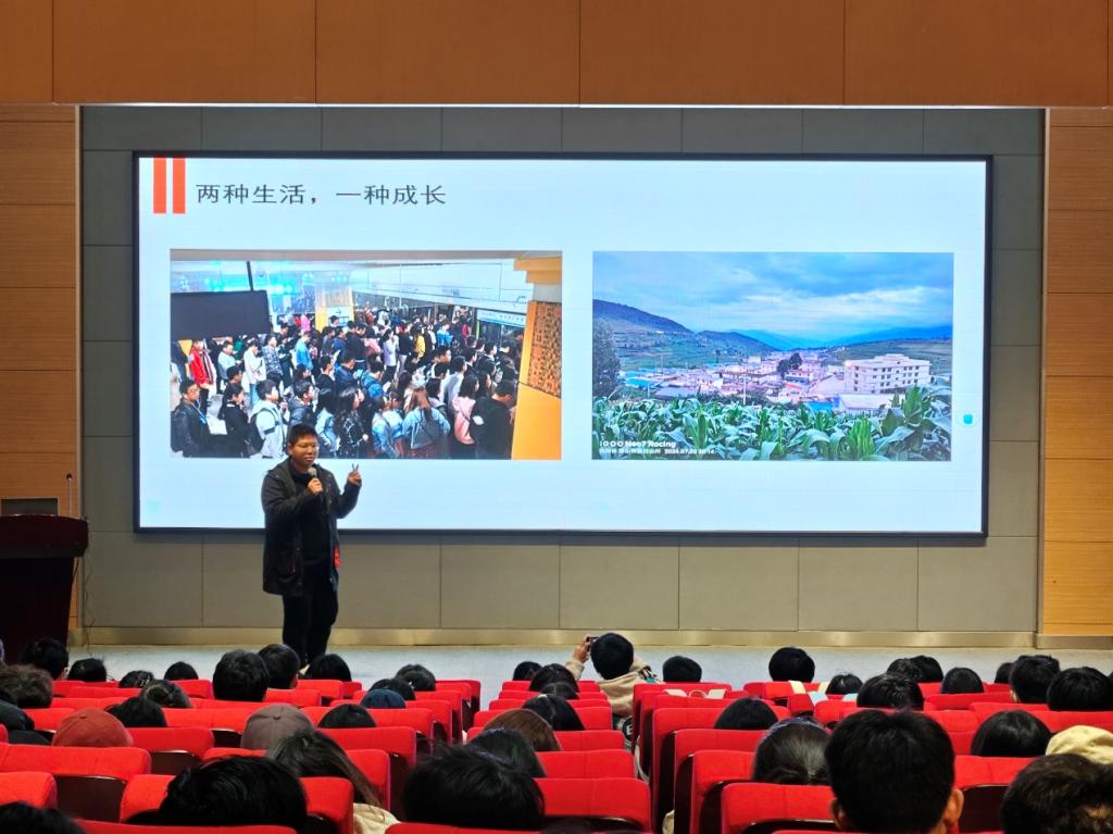 ,现服务于四川省凉山州金阳县小银木乡人民政府的蒋贵平,以《我与“小银木”的故事》为题讲述了自己从城市焦虑到乡村沉淀的转变,通过基层工作日常的介绍娓娓道来,分享了自己的成长与蜕变。他说从“怕犯错”到“敢担当”,从“追赶时间”到“理解时间”,从“数字焦虑”到“温度认同”,基层服务让他真正懂了“奋斗的青春最闪光”的含义。