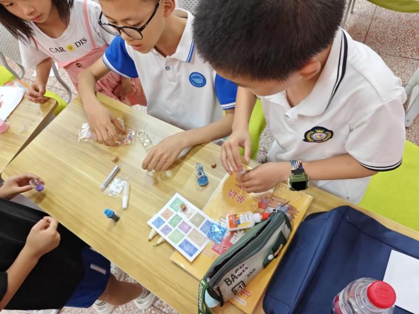 当天,孩子们早早到达活动现场,眼神中充满好奇与兴奋。志愿者们迅速投入角色,耐心地引导孩子们开启魔法瓶制作之旅。在装瓶环节,志愿者轻声提醒孩子们色彩搭配的技巧,帮助他们创造出独特的视觉效果。当遇到分层等操作难题时,志愿者们手把手地指导,鼓励孩子们不要气馁,一步步完成创作。在活动过程中,孩子们积极交流创意,分享制作心得,现场气氛热烈而温馨,志愿者们也被孩子们的纯真与热情所感染。