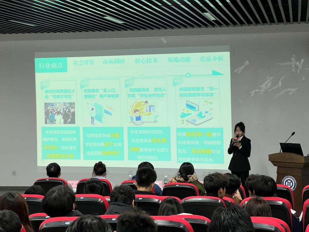 于近日在 10501 教室成功举办院赛答辩。本次竞赛共有18 个项目进入现场答辩环节,项目内容紧扣国家战略与社会需求,涵盖人工智能赋能、绿色低碳技术、乡村振兴数字化、城市智慧治理等多个前沿领域。