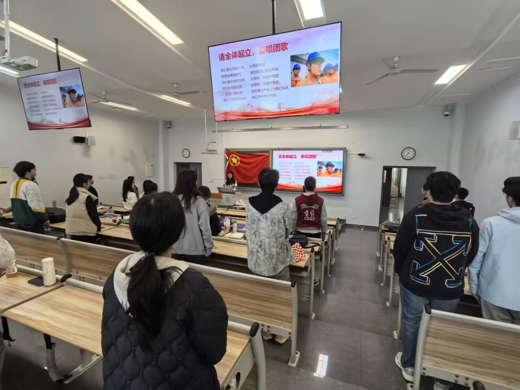 活动在庄严肃穆的氛围中拉开帷幕。全体与会同学起立,齐唱中国共产主义青年团团歌。激昂的旋律在会场内久久回荡,充分展现了成都大学青年团员朝气蓬勃、奋发向上的精神风貌。团歌奏唱不仅是一次仪式教育,更是一次深刻的精神洗礼,让每一位在场学子重温入团初心,坚定理想信念。