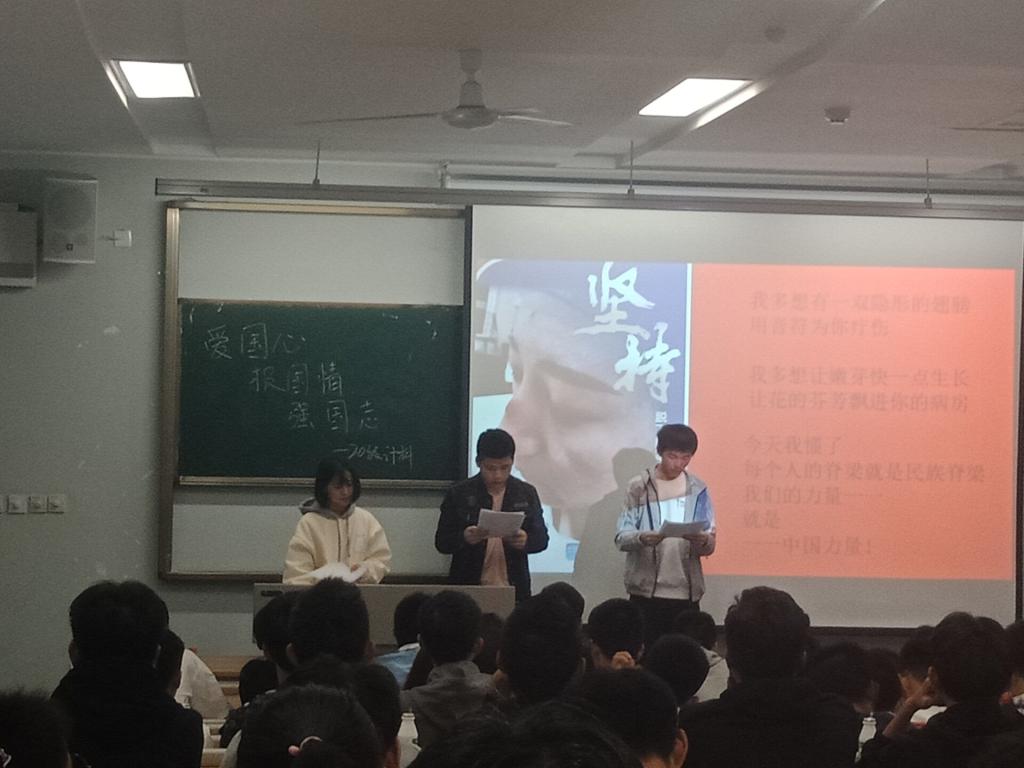 班会围绕民族精神,中国历史等多个方面展开,首先由计科三班的罗钱同学带来主题演讲“爱国心,报国情,强国志”,演讲激动人心,令人再一次感受到那些民族英雄的英勇气概。同学们反响热烈,将现场气氛推至高潮。随后的两个短视频讲述了祖国改革开放以来发生的翻天覆地的改变以及疫情期间抗疫前线人员的不懈努力,彰显了中华民族顽强不屈的精神。