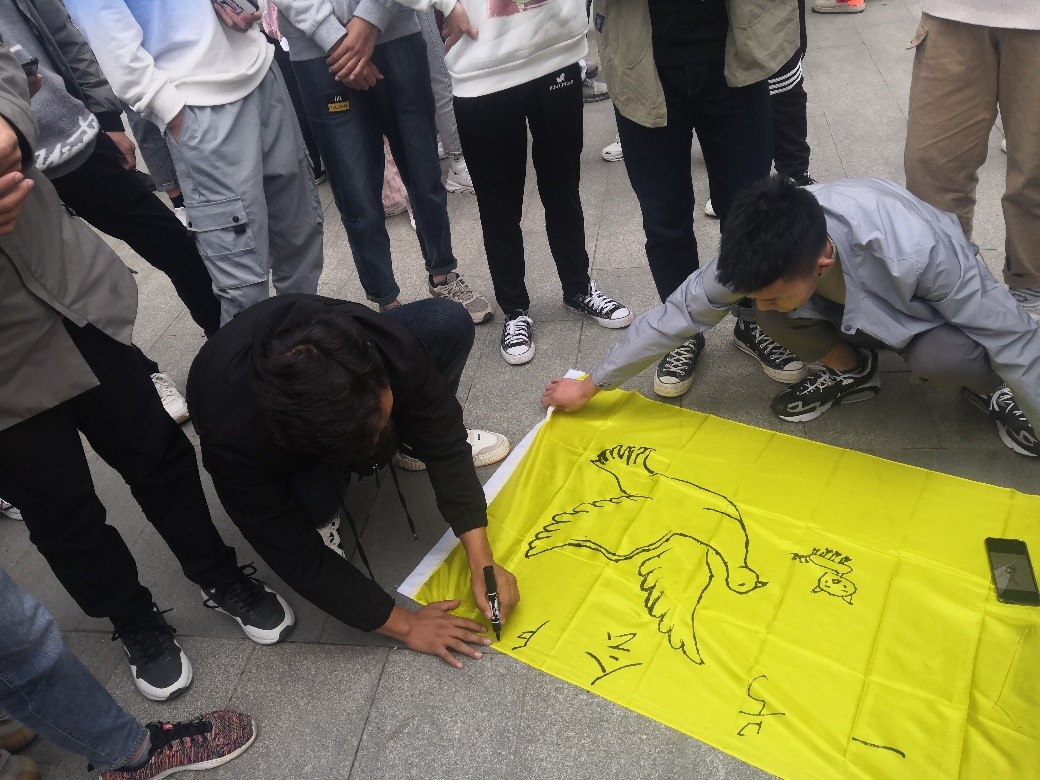 活动开始前,各个班级绘制班旗,随后开始活动。