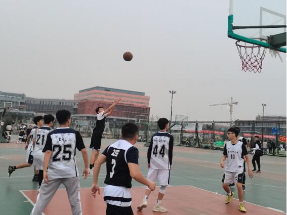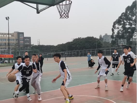 体育部举办的5V5友谊篮球赛在一食堂篮球场上正式开赛。