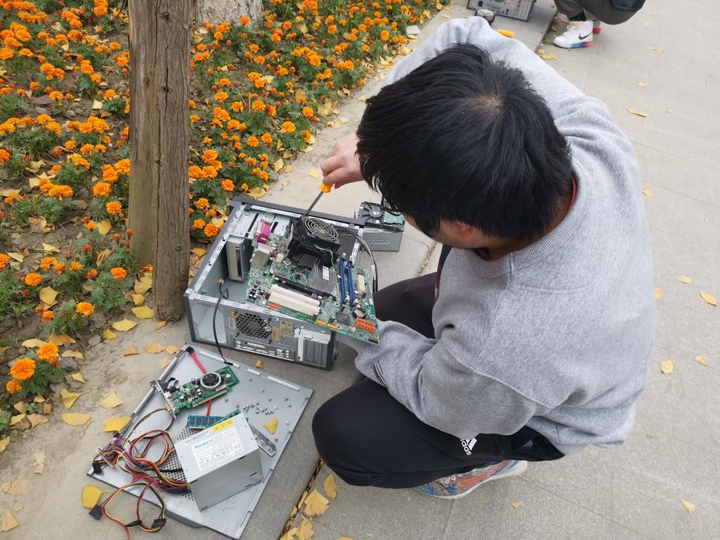 比赛尚未正式开始之前,已经有不少同学来到比赛现场,为即将开始的比赛做好准备。到场同学首先根据签到表上的顺序进行分组,随后对每组装机进行计时评定。比赛正式开始时,同学们迅速拿起各自的组装工具对自己面前略显复杂的电脑主机进行复原,现场瞬间安静下来,只充斥着螺丝刀与零件碰撞发出的声响。每个人都在争分夺秒,专心于眼前的主机复原工作,他们的认真以及出色表现也引来不少路人驻足观看。