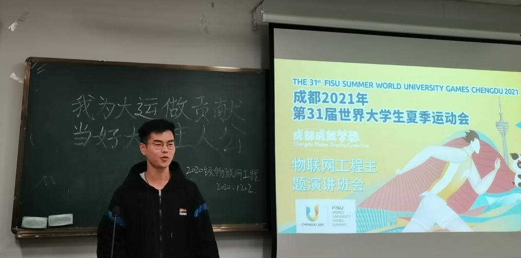 2020级物联网工程专业在A教328教室举行了“我为大运做贡献,当好大运主人翁”的主题班会。此次班会由郭子恒主持。