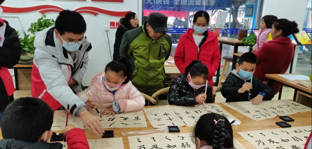 的6名志愿者组织并带领孩子们有序进入活动中心,随后开展相关活动。活动开始,志愿者先帮助孩子们认识并了解文房四宝。在老师讲解演示之后,志愿者们帮助纠正孩子们的拿笔姿势并维护课堂纪律。