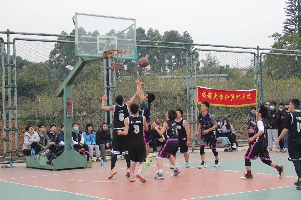 比赛开始,现场的气氛急剧攀升!狭路相逢勇者胜,双方很快进入了激烈的角逐。赛场上,双方比拼很激烈,团队之间的默契传球、完美配合。队员间熟练地运球、传球,对阵双方积极地拼抢、精准地投篮,一个又一个不可思议的三分球引来围观同学一阵阵地喝彩。在场的观众情绪高涨,奋力呐喊,呐喊声充斥着整个球场,为各自支持的球队加油助威,喝彩声也一浪高过一浪。