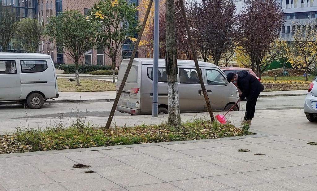 下午14时,同学们全部集结到位,拿着各自的打扫工具,在负责人的安排下,开始了义工活动。虽寒风刺骨,但同学们依旧认真仔细。花坛里的烟头、竹签,小心捡起,路边的一点点口香糖,认真清理。同学们身旁的垃圾袋,见证了他们清扫的过程。