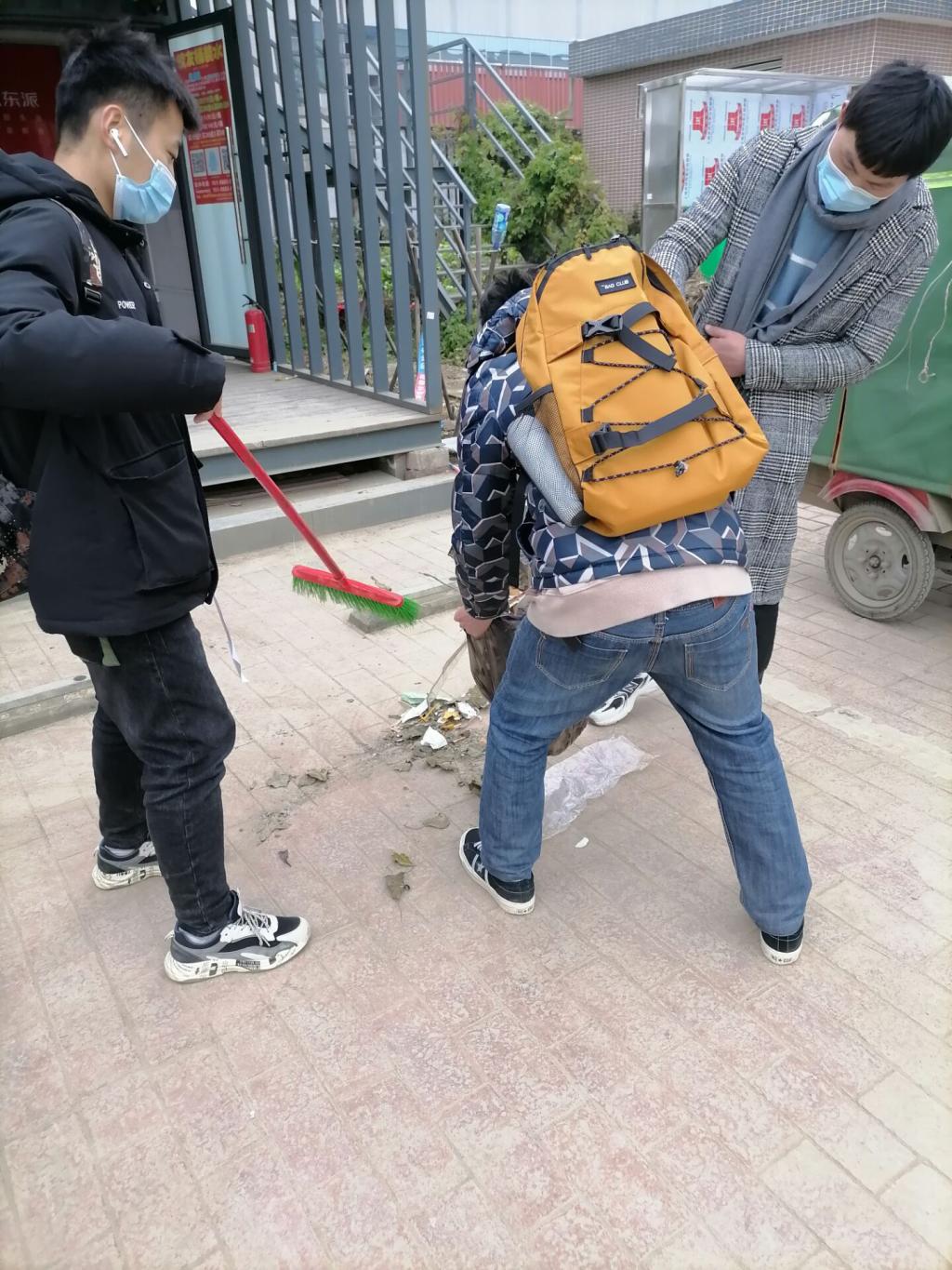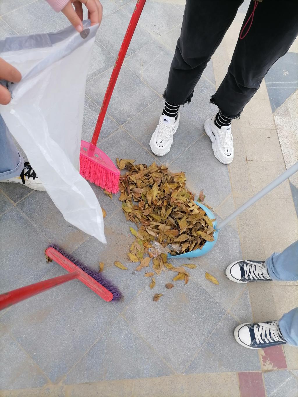 活动开始,青协负责人刘子豪对本次义工活动相关工作进行安排。随后带领各班进行签到,之后同学们投身工作之中。在清扫完3楼教室与走廊后,同学们听从负责人安排对1楼的花园和停车场进行了清扫。同学们有的负责戴着手套捡烟头,有的则负责用扫帚清扫落叶。经过大家一番努力合作后,环境焕然一新。最后,进行了活动的签退、义工服务时间的记录以及合照留念。