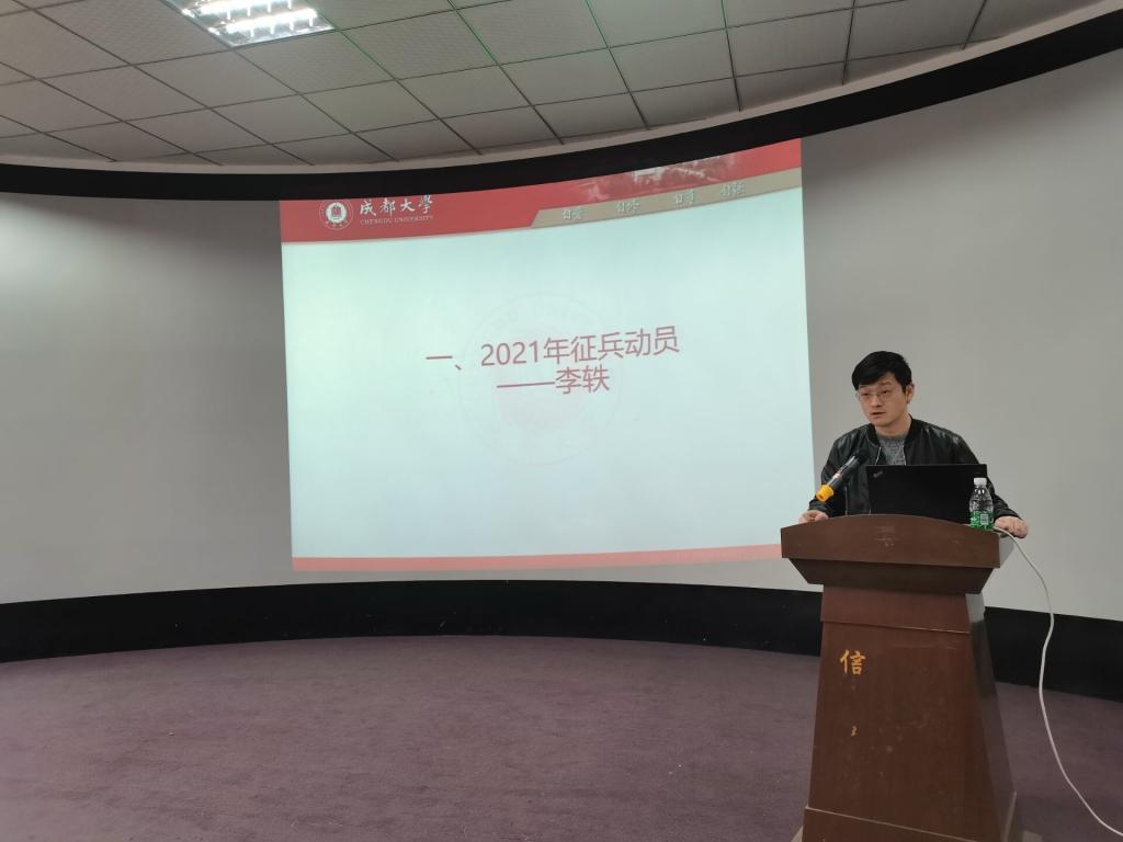 会议伊始,首先由李轶进行2021年征兵动员宣讲。他就征兵的网上登记报名、基本要求及注意事项、全日制大学生参军鼓励政策等方面为同学们进行了宣讲,鼓励同学们特别是未就业的2021届同学广泛了解参军政策,积极报名入伍参军。