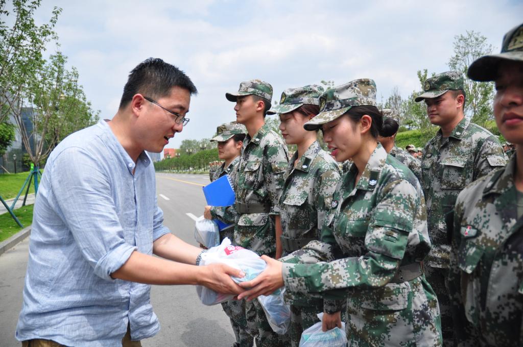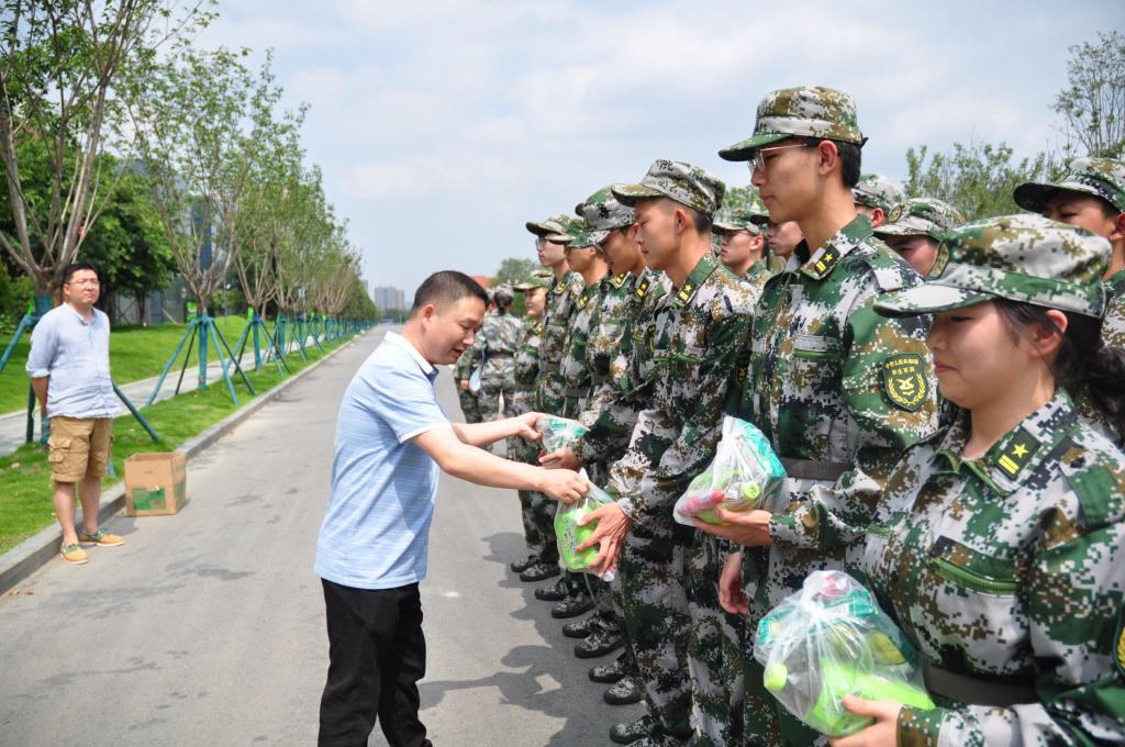 领导一行走访了军训方阵后,首先对承训教官们这段时间的辛勤付出,表示衷心的感谢和诚挚的敬意,表扬了同学们训练过程中严肃认真的态度,激励同学们在剩余的训练时间里再接再厉。随后,王进为各位教官送上了慰问品,孟源向学生代表发放慰问品,李轶为全体参训同学发放慰问品,同学们领取慰问品过程中,有序排队,并向Bwin体育