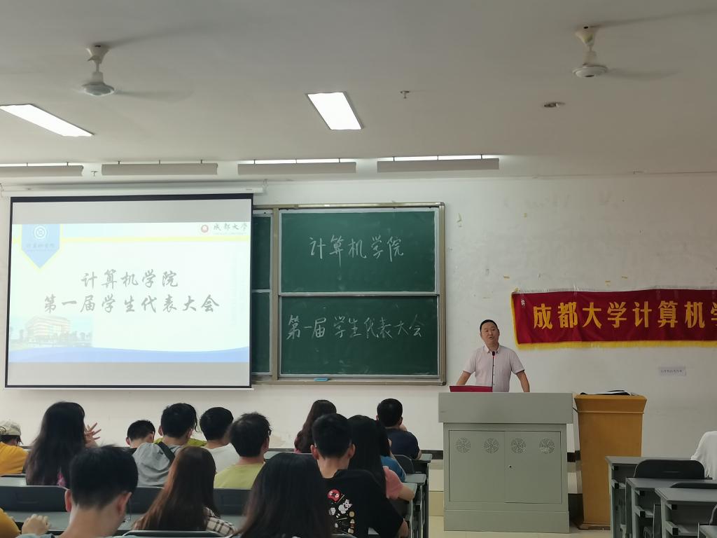 第一届学生会代表暨分团委学生会换届大会。出席本次大会的嘉宾有,副书记孟源、学工办敬晶老师、龚硕老师、李轶老师、各位学生干部以及222名正式学生代表。本次大会由许泽涛主持。