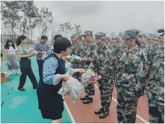 学子们自强不息的精神风貌。首先,肖小琼对承训教官们这段时间的辛勤付出表示衷心的感谢和诚挚的敬意,表扬了同学们训练过程中严肃认真的态度,激励同学们在剩余的训练时间里再接再厉。随后,各位领导为各位教官、学生代表和全体参训同学发放慰问品。最后,教官张思灵组织全体21级Bwin体育