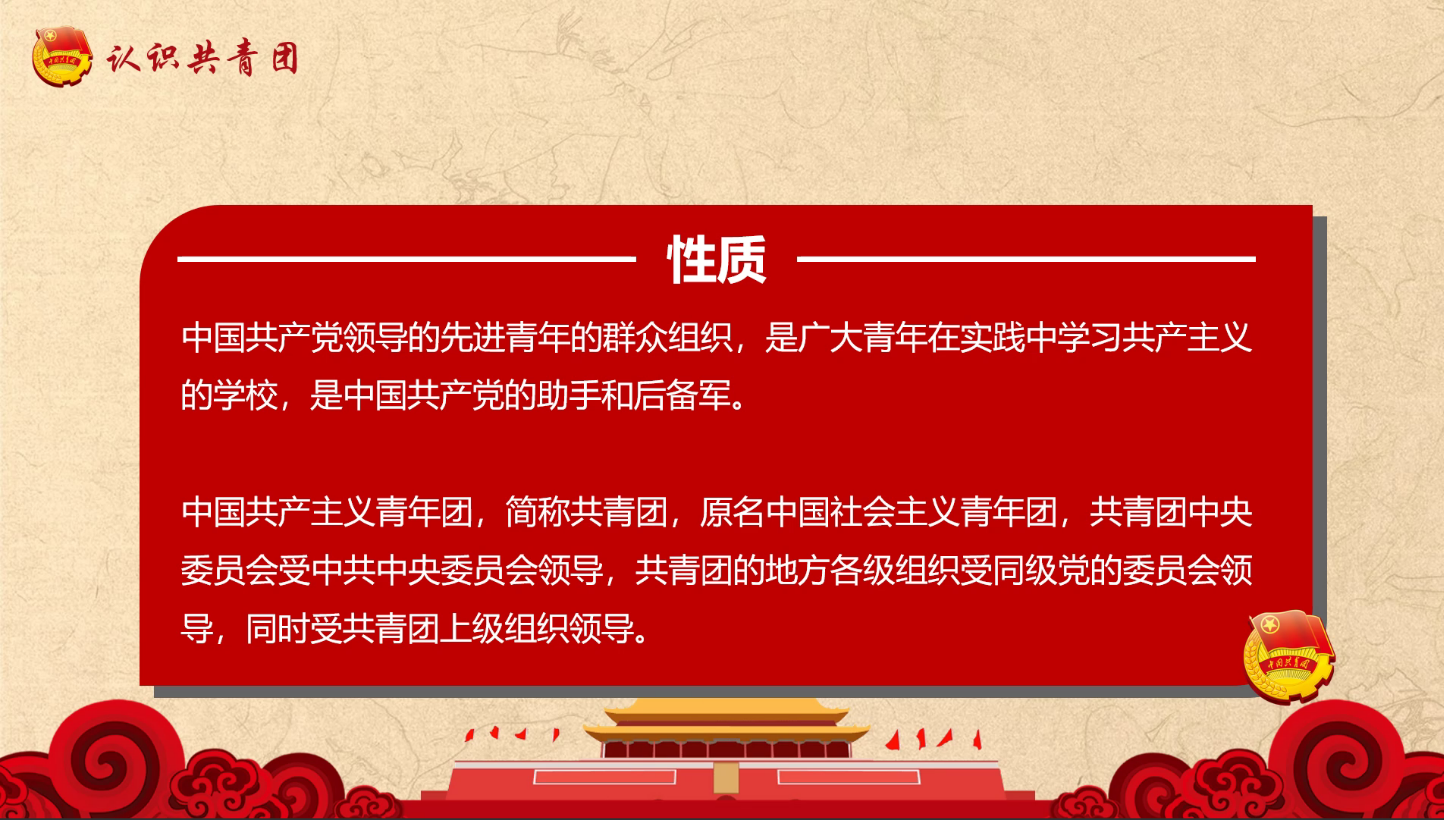 会议伊始,龚硕为同学们讲解共青团的性质、历史、任务、职能,团员权利和义务的关系以及团的活动和纪律.。她讲到,共青团是先进青年的群团组织,是广大青年在实践中学习共产主义的学校,是中国共产党的助手和后备军。接着,她带着同学们从社会主义青年团的建立开始,一步步深入,回忆中国的光辉历程。在共产主义青年团时期,在白色恐怖中,中国共青团跟党走的决心毫不动摇。新民主主义青年团的建立为团结全国各族青年、建设美好中国、增强团员责任感和使命感起到了决定性作用。她说到随着中国共产主义青年团时期举办的各种大型会议,暗示着青年是整个社会中最积极最有生气的一部分,暗示着国家的未来和民族的希望。
