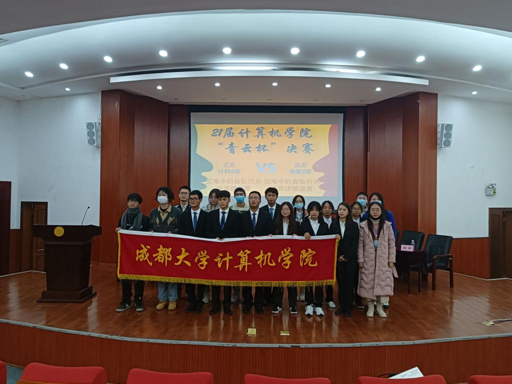 最后,本次新生辩论赛决赛以计算机科学与技术4班的胜利而宣布圆满结束。嘉宾和参赛选手在最后进行拍照留念。