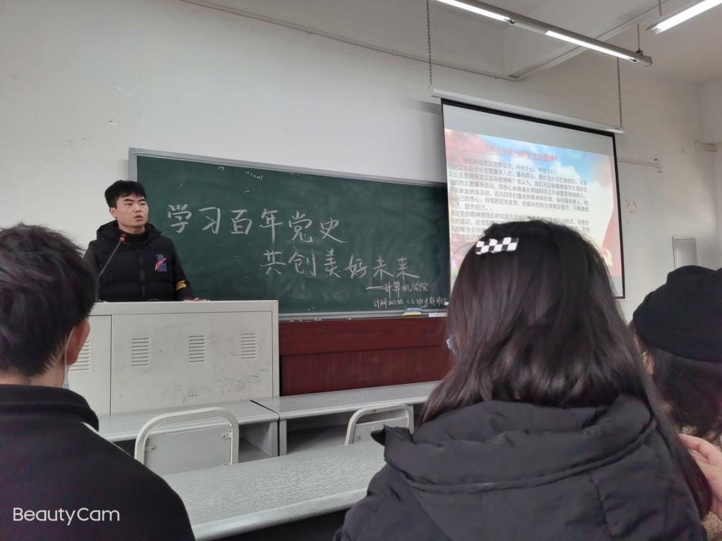 2021级计算机科学与技术专业1、2班举办了“学习百年党史,共创美好未来”的主题班会。参加本次主题班会的有班主任龚硕老师以及两个班级全体同学。