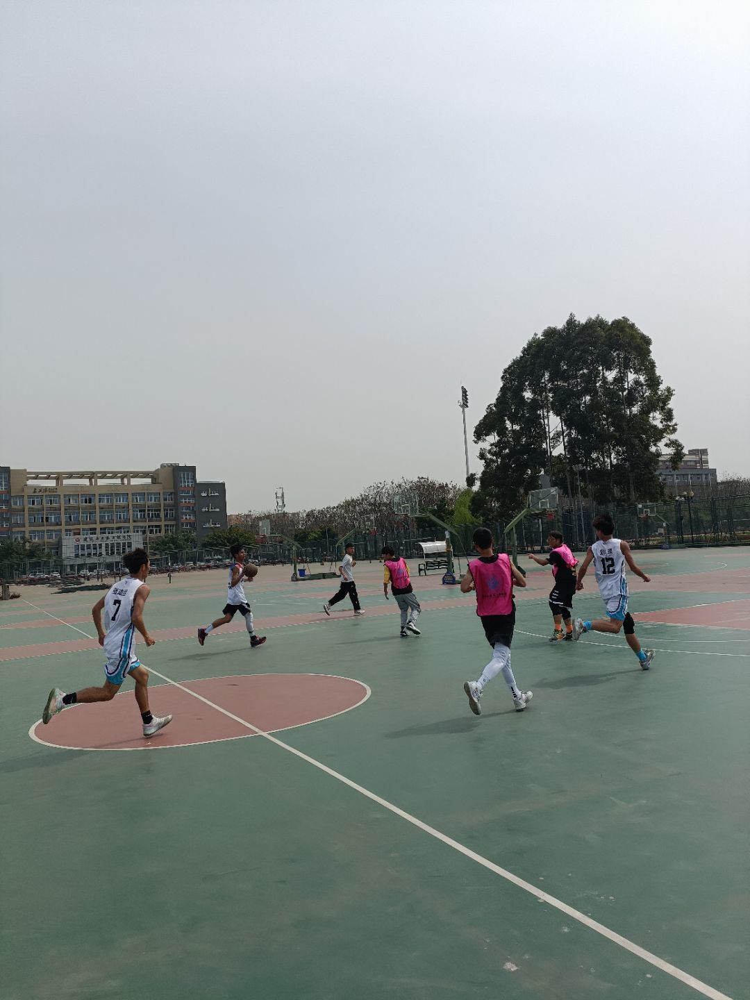 于一食堂篮球场联合举行篮球赛。