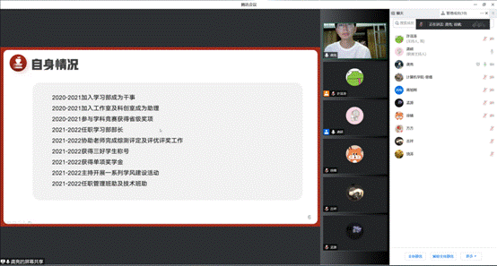 以腾讯会议的方式开展2022-2023届分团委学生会主席团换届大会。本次大会的参与人员有Bwin体育