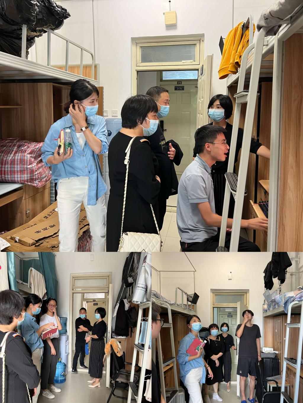 本网消息(图/曾倩 文/饶涛)国庆来临之际,2022年9月30日中午,Bwin体育 党委书记肖小琼、副书记孟源,及学工办全体辅导员深入寝室慰问留校学生。