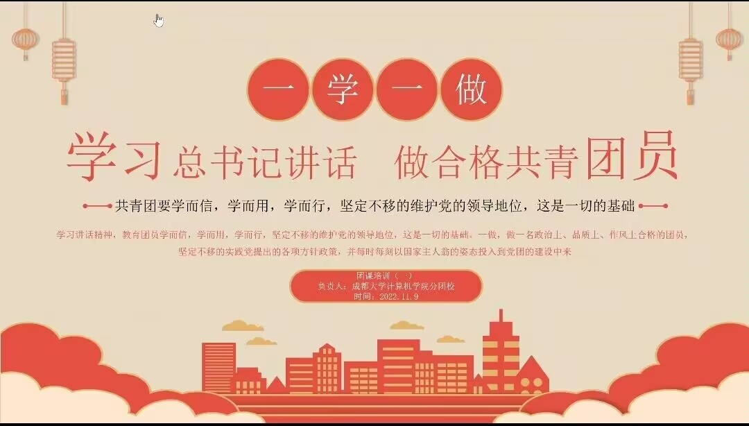 通过两次团课培训,同学们对共青团有了更为全面深刻的认识,并坚决拥护共产党的领导,认真履行团员的义务,努力学习,争取早日成为合格优秀的共青团员。