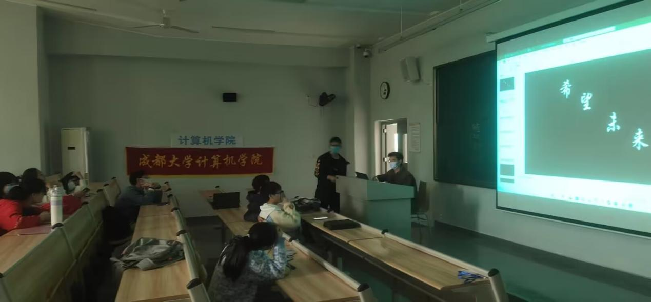 比赛开始,参赛同学依次上台播放作品并进行讲解,期间,评委们询问每位选手的制作过程、创作灵感,以及他们对“希望未来”主题的见解,并且给出一定专业的指导。选手们认真回答评委的问题,同时也虚心听取评委的意见与建议。
