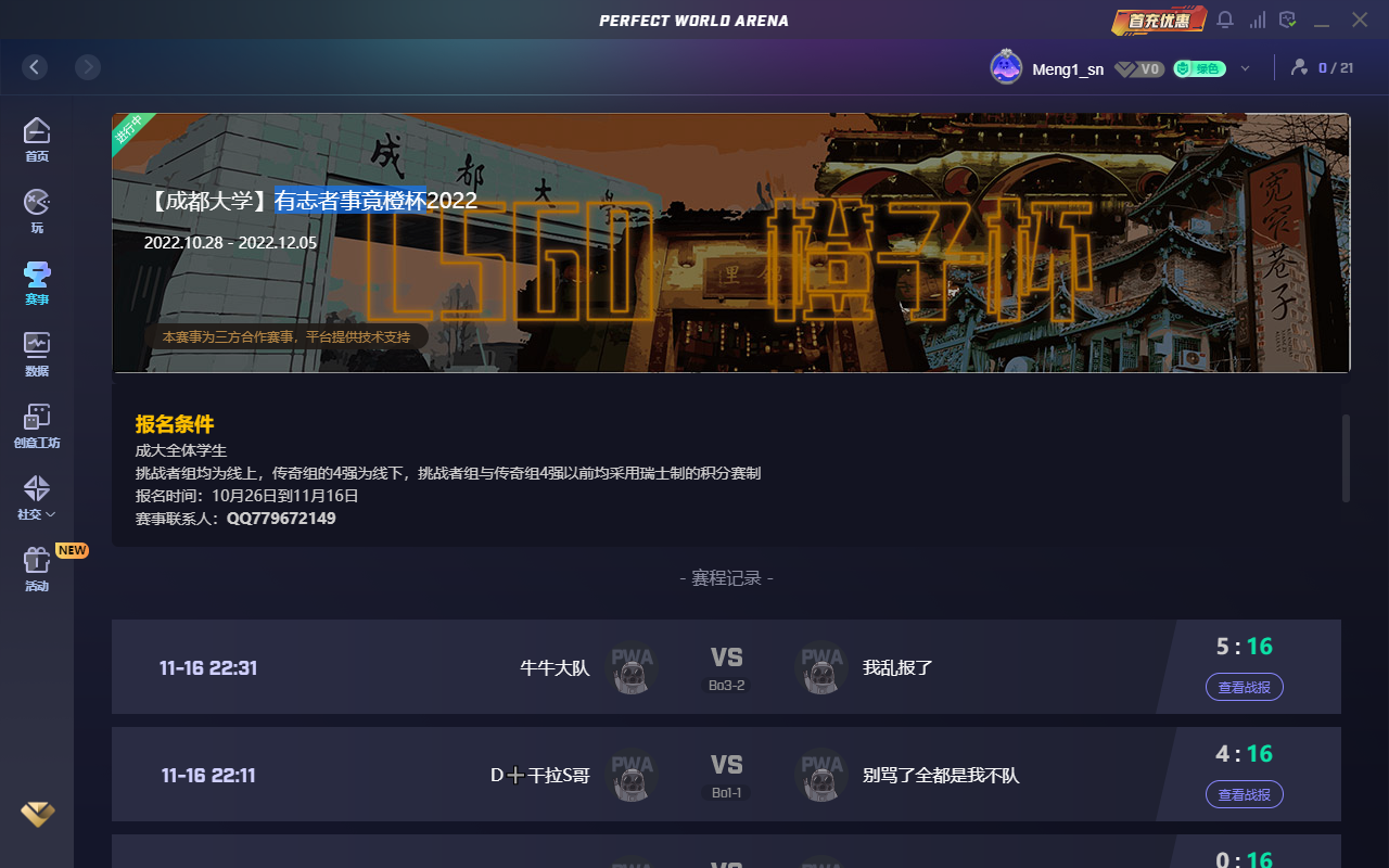 (本网消息 文/图 王艺静)11月17日12点,成都大学“橙子杯”第二届电子竞技比赛之CSGO大赛决赛圆满结束。本次比赛旨在增进校友感情,激发同学们的拼搏精神,构建成大良好的CSGO游戏环境。本次比赛成都大学电竞社向完美世界对战平台申请校园比赛,全程比赛在完美世界对战平台线上进行。