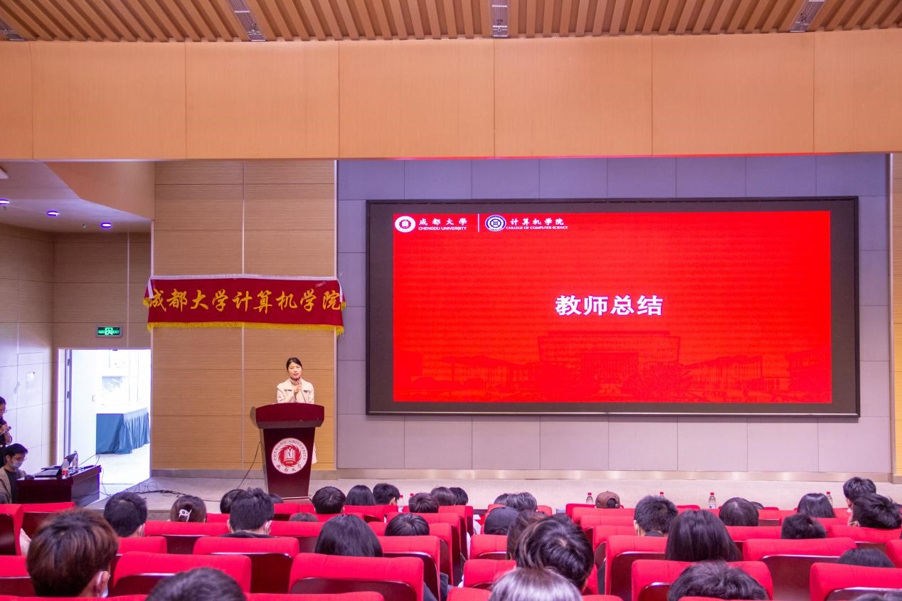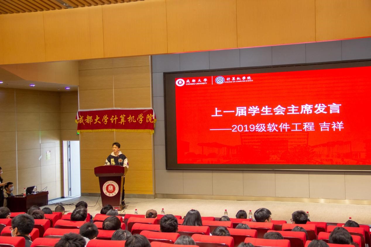 最后,龚硕对上届学生干部表示感谢,对新任干事部长表达期望 ,希望各部门能够再接再厉,继续前行。主持人徐靖对本次大会做一总结,至此,本次大会圆满结束。