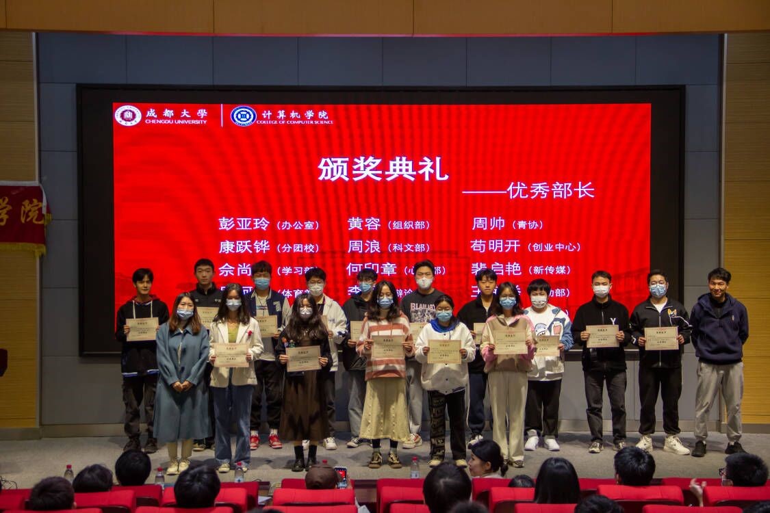 接下来,龚硕以及上届学生会主席为上届优秀部门、部长及优秀干事颁奖 ,各部门留任部长派代表发言,总结了一学年的工作情况,表达了对老师和上届部长感谢以及对未来工作的展望。各部门优秀成绩的取得都需要一颗真诚服务同学的心,良好的工作素质,扎实的工作作风,强大的号召力与凝聚力,而这些也在前辈身上都得以印证,也是今后新一任学生会部长需要学习和保持的。