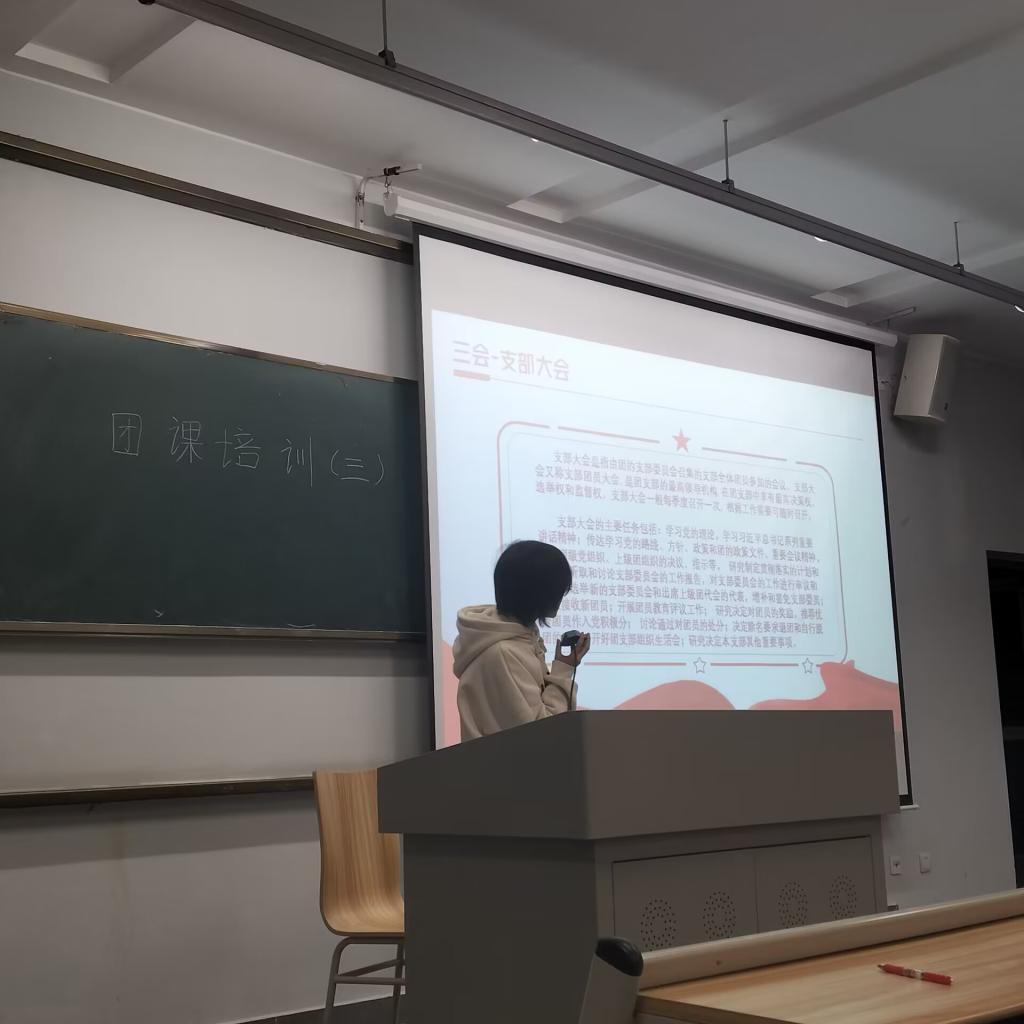 学习开始时由周远英同学讲解“三会两制一课”、“立足青年”两个方面,为我们详细的阐述了“三会两制一课”的深刻内涵和身为青年的我们怎么去立足青年为国家发展出力。然后由廖宇航同学对“着眼大局”、“追寻共青团计划”两个方面进行讲解。廖宇航同学为我们阐述了“着眼大局”应该从哪些方面入手,以及对于“追寻共青团计划”作为青年的我们应该怎么做和我们为什么要去实行“追寻共青团计划”。两位同为参加培训的同学带来了精彩的一期团课培训。