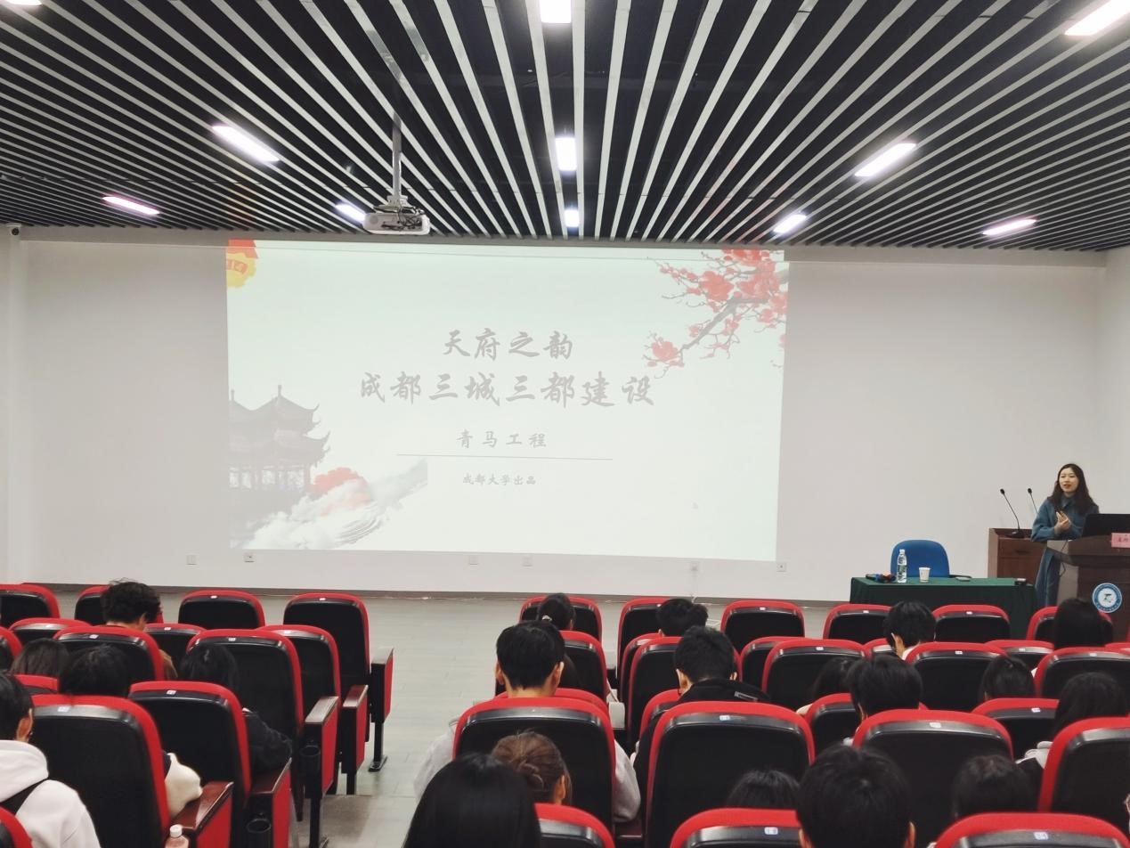 团委书记曾倩主讲,向同学们讲述着成都天府之韵,让同学们对自己身处的这座城市有更深的了解。