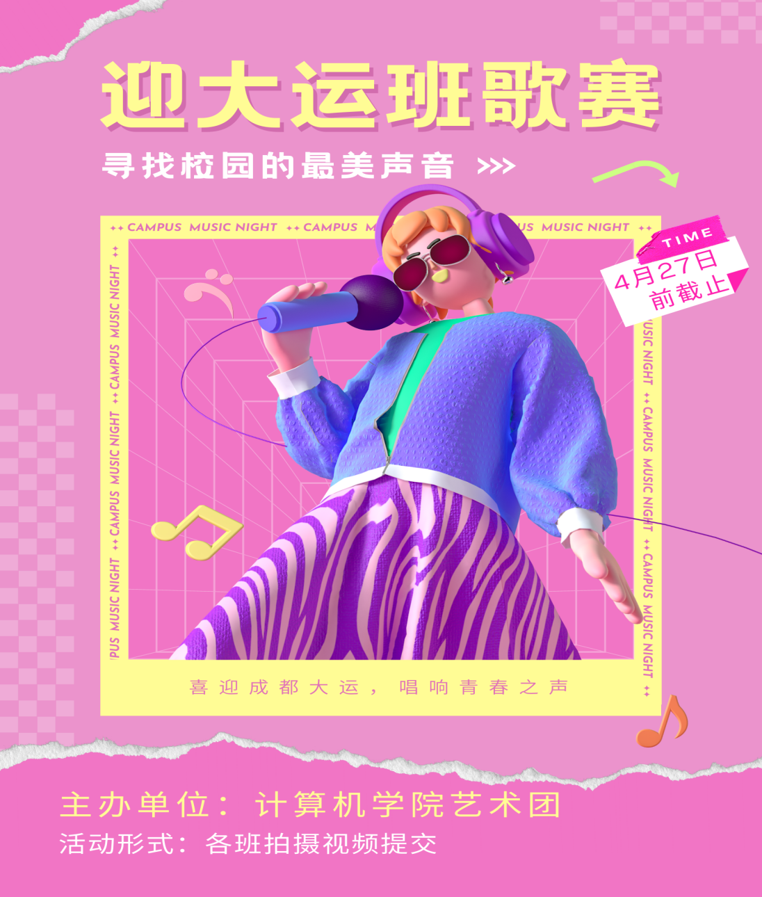 举办了一场别开生面的班歌大赛,吸引了全校师生的广泛关注与热议。此次活动的主题为“喜迎成都大运,唱响青春之声”,旨在通过歌声传递学子们的热情与梦想,提升校园文化建设,展现成都大学学子的精神风貌。涵盖了青春励志、校园怀旧、民族风情等多种元素的歌曲风格,充分展现了成都大学学子的创意与才华。