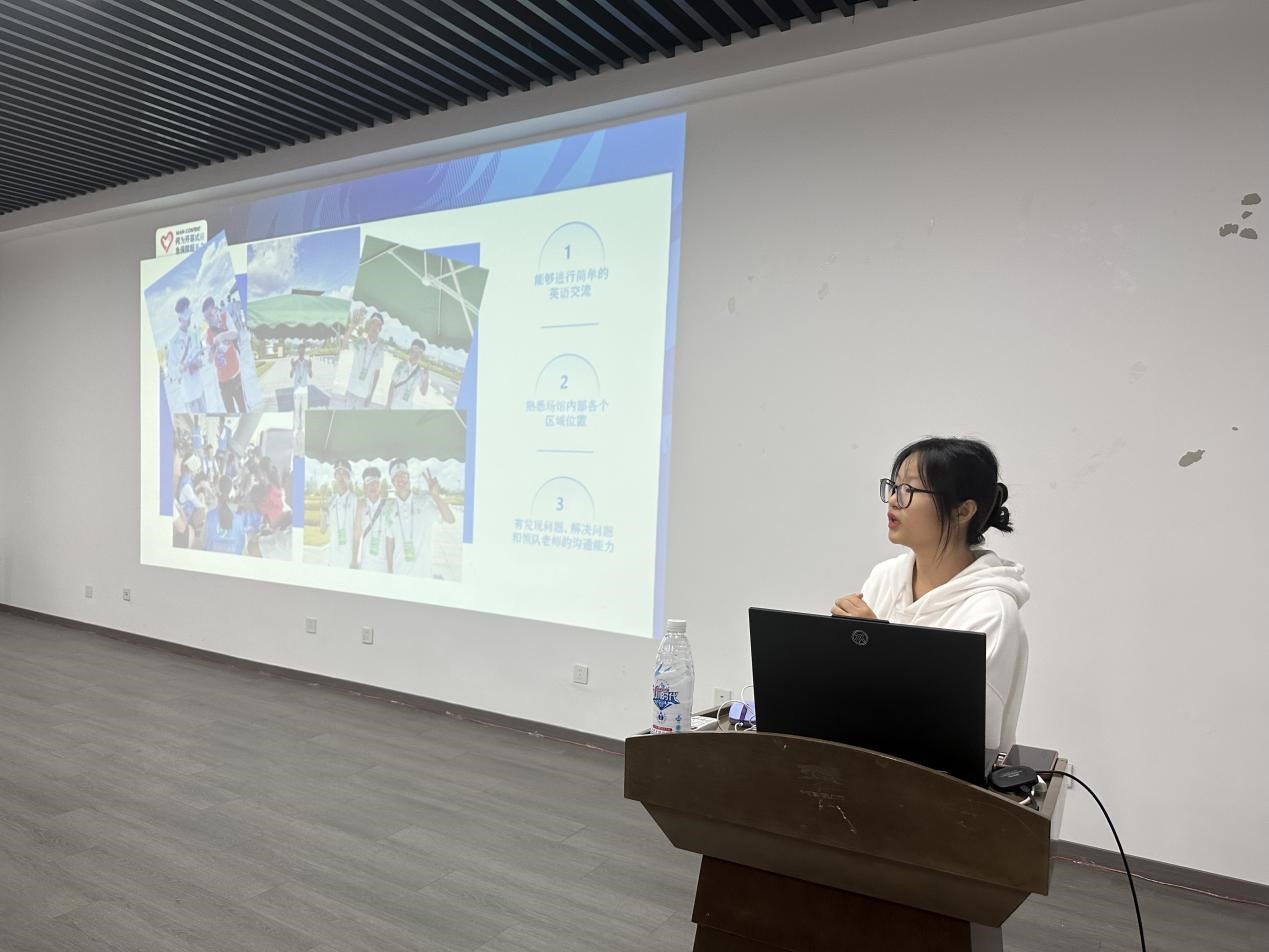 青年志愿者协会分会成员,成都大运会开幕式运行中心应急保障服务志愿者余纤主讲。