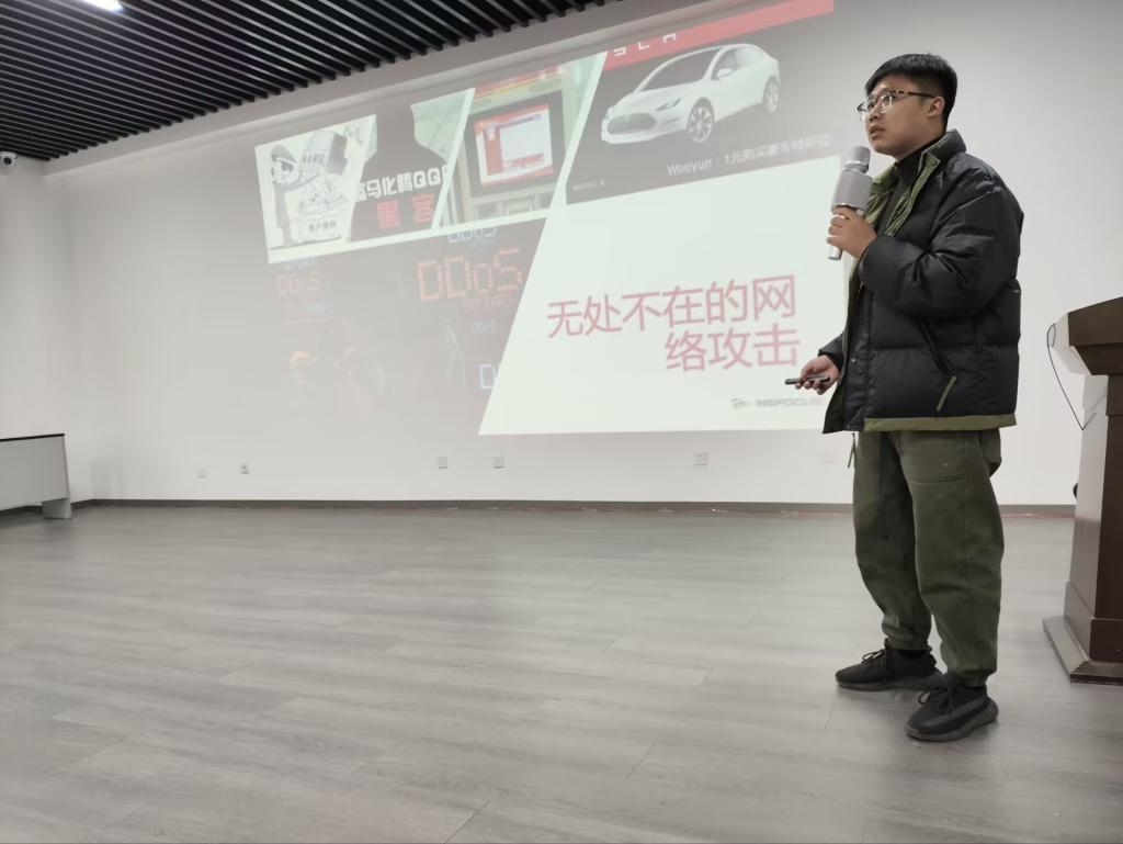 讲座伊始,马寅孟首先从发生在身边的网络安全小故事、网络上流传较广的网络安全事件和国家之间的网络空间安全斗争描述了个人、我国及全球的安全形势。随后,从行业薪资、市场人才需求和安全行业岗位技能为同学们详细介绍了网络安全行业的就业前景,以网络安全行业多年从业经验,向同学们分享从事网络安全相关工作的个人建议和看法。最后,带领同学们通过线上的方式走进企业,认识了解安全厂商的日常工作环境和工作流程。