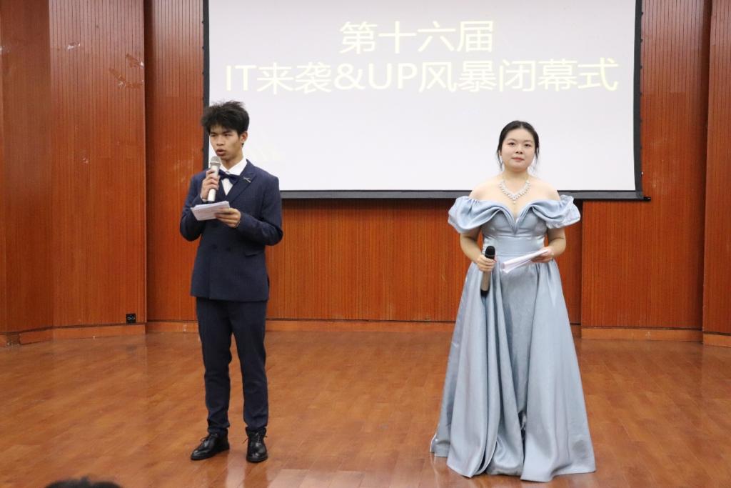 最后,肖丽娟老师发表了闭幕致辞,对整个活动的成功举办表示祝贺,同时感谢了所有参与者的辛勤付出。她强调活动的成功不仅离不开同学们的热情参与,更得益于学校各部门的大力支持。整个闭幕式在欢笑声和掌声中结束,活动成功举办不仅丰富了同学们的课余生活,更促进了学术与艺术的交流。第十六届“IT来袭”&UP风暴活动成为校园中一道亮丽的风景线,为同学们留下了美好而难忘的回忆。