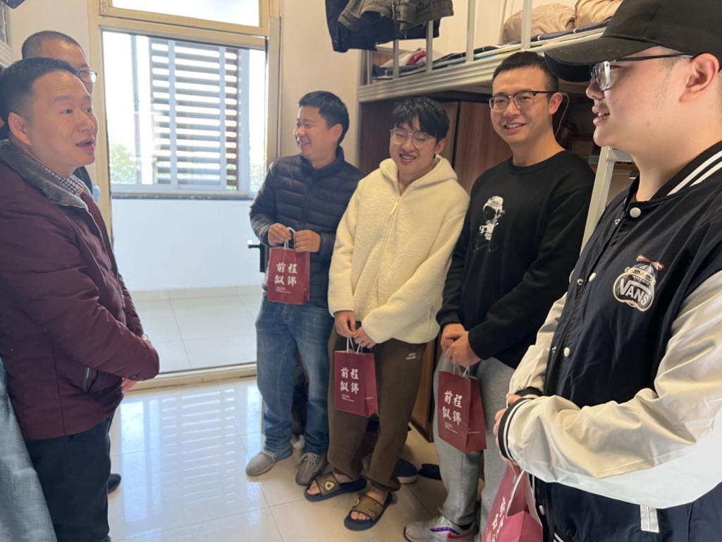 党委副书记孟源携学工办辅导员走访图书馆和学生宿舍,对考研学子进行了“温暖传递、‘研’途相伴”的考研慰问活动。