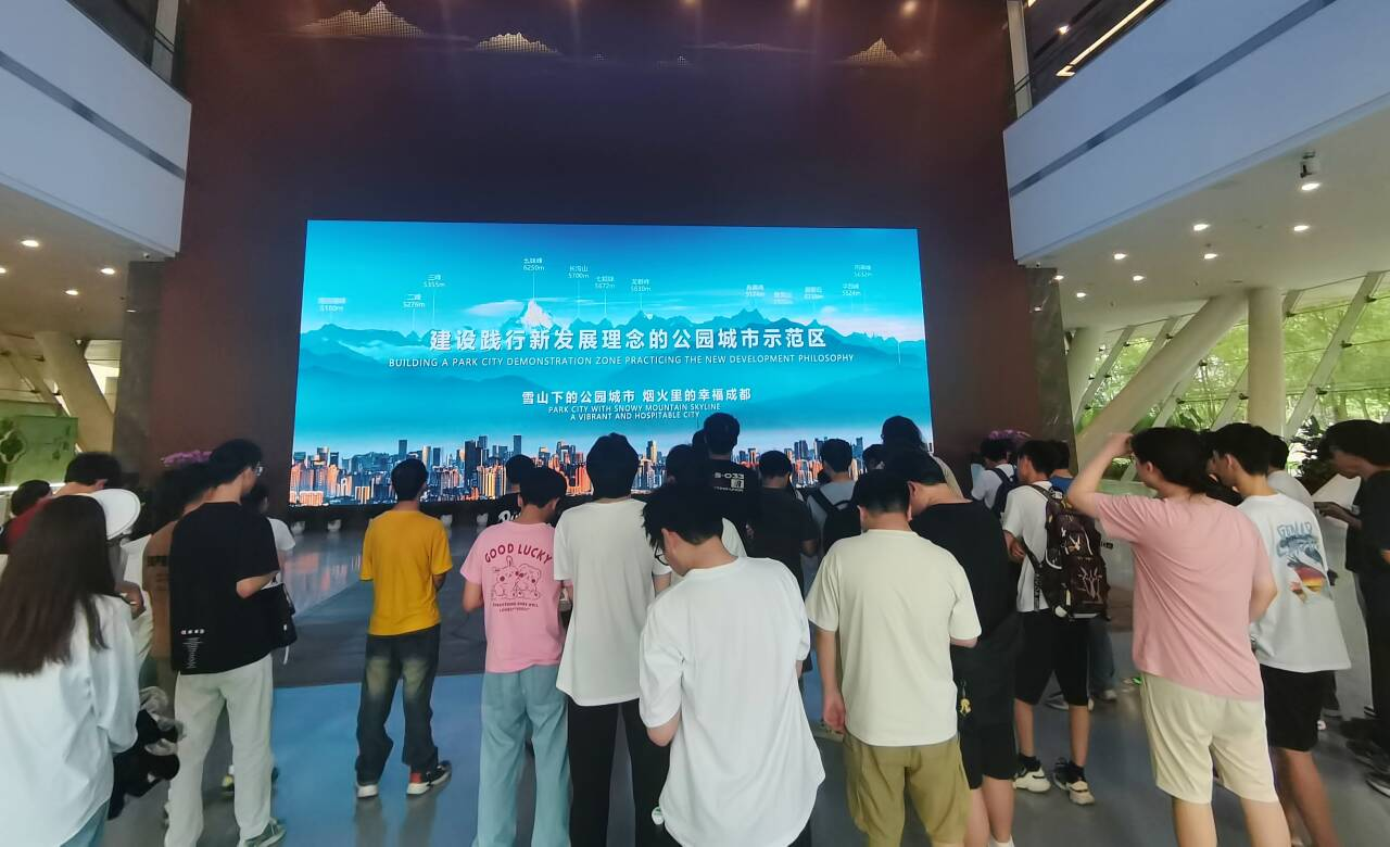 在城市历史厅,同学们通过珍贵的文物和图片,了解了成都从古蜀文明到近代的变迁历程。在战略定位和战略目标厅,同学们深入了解了成都作为“国家中心城市、美丽宜居公园城市、国际门户枢纽城市、世界文化名城”的内涵、特征及发展策略。而在全域实体模型展示区,同学们被巨大的模型所吸引,生动展现了成都从“两山夹一城”到“一山连两翼”的城市空间格局转变,以及“一心、两翼、三轴、多中心”的市域空间结构等规划信息。