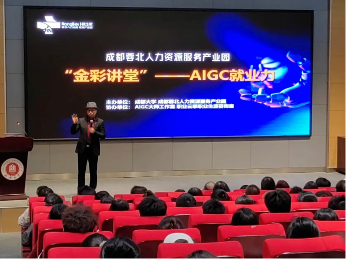 通过精心策划的讲座内容,全面介绍了AIGC技术的基本概念、工作原理及其在多个行业的应用潜力,深入分析了行业的发展趋势,为学生揭示了未来职业机会,并提供了关于如何提升个人技能以适应市场需求的实用建议。此次讲座的成功举办,不仅极大提升了蓉北人才港在我校及业界的知名度,也加深了其与高等教育机构的联系,增强了其在人力资源服务市场的品牌影响力。通过与蓉北人才港的紧密合作,我们成功展示了在促进教育与产业深度融合方面的积极探索与实践,为成都大学的学子们在职业规划和学术研究上铺设了坚实的桥梁,提供了强有力的支持。