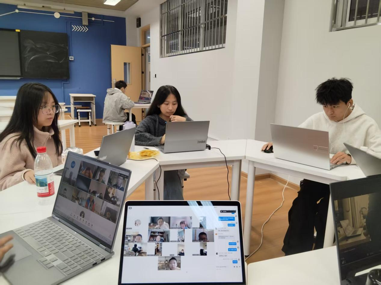 团队参观校区人工智能实验室后,了解到学校 AI 教育成果。刘强校友介绍,成都树德中学深耕 AI 教育多年,不仅构建完善课程体系、发布全国首个基础教育校级智能体 “树德号” 并接入大模型赋能教学,还打造多个全国典型课例,获评 “全国人工智能教育基地校”,案例更入选世界人工智能大会优秀案例。随后,团队以线上形式履行监考职责,提前进入腾讯会议考场进行系统调试,逐一核对考生身份与机位布置;考试中通过双视角实时巡查,快速响应网络波动、系统卡顿等突发情况,并解答考生在软件操作和题型理解方面的疑问,全程保障考试顺利进行。团队在任文杰老师的指导下,以高度的责任心细化工作流程,顺利完成工作,刘强校友与任老师对同学们积极投入、高效执行与出色的团队协作表现表示充分认可与高度赞扬。