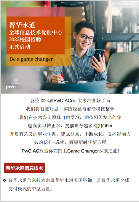 【就业资讯】普华永道全球信息技术优创中心