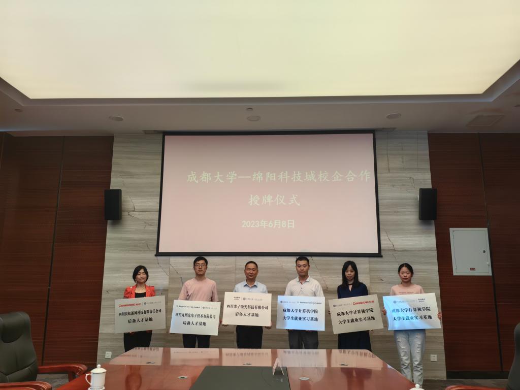 与九州光电子、四川长虹新网络等6家企业签订了校企合作协议并现场进行了就业实习基地和后备人才基地的授牌仪式。