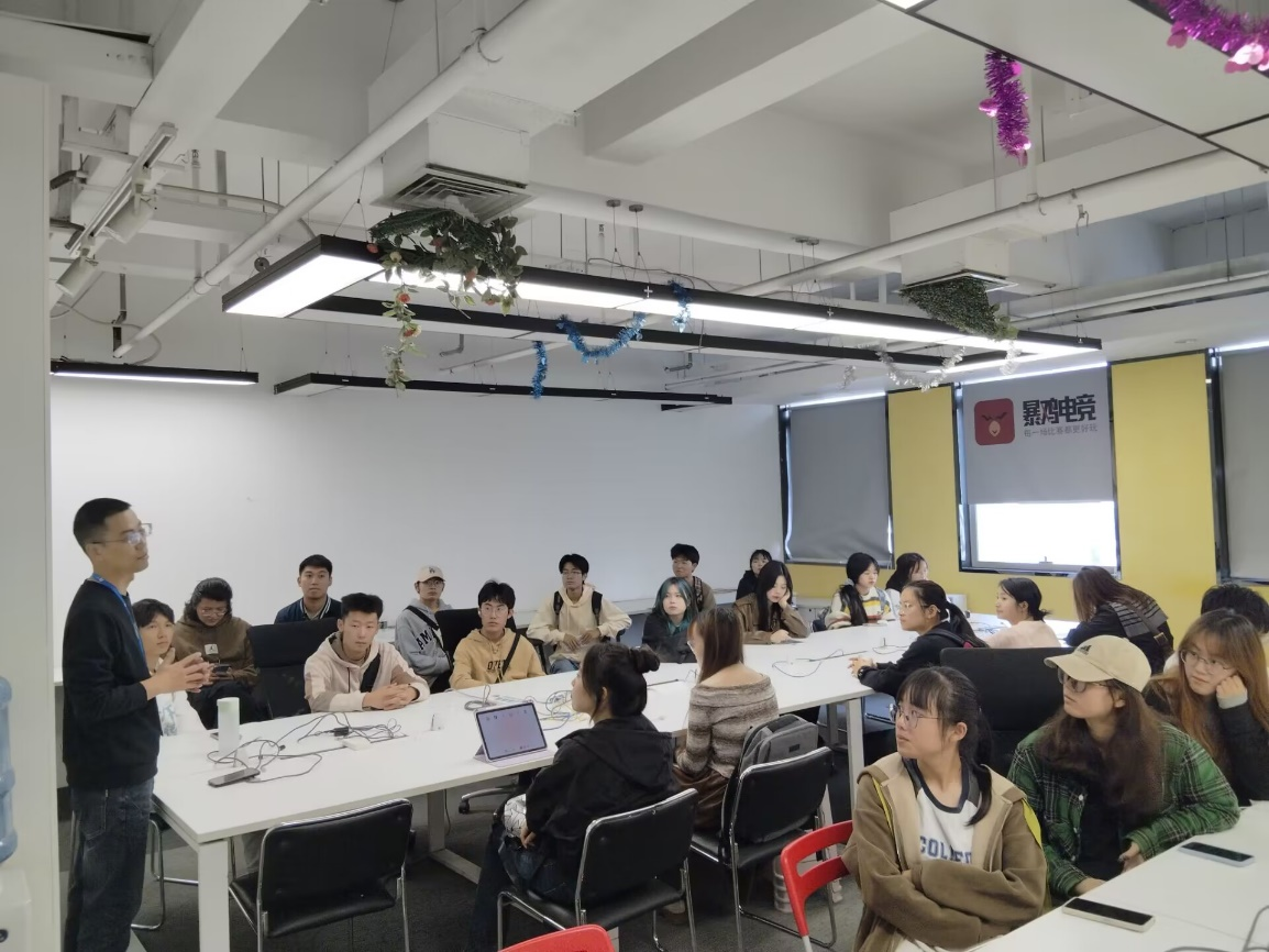 下午两点左右,学生们分为两组,有序走进公司进行参观。该公司人事杨老师向学生们介绍了公司建成、公司与品牌对接情况、发展主要目标、硬件设施、办公室情况以及所得奖项。随后,项目经理分享该公司直播数据和ip(新媒体)项目、以及产教融合等。活动期间,学生们积极向杨老师和项目经理提出问题,相互探讨就业困惑,并得到了相关问题的反馈。